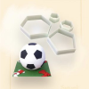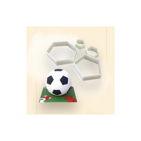 2-2 darab ötszög, és hatszög alakú műanyag kiszúró készlet. Ötszög méretei: 3 és 7 cm. Hatszög méretei: 3,6 és 8 cm. A focilabda fondant kiszúró, két-két ötszög és hatszög alakú müanyag formát tartalmaz, amelyek segítségével szabályos alakú és egyfor