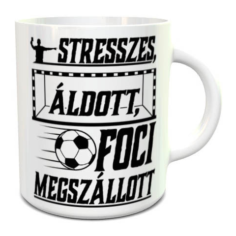 Focis ajándék, foci megszállott bögre. Humoros feliratos bögre a futball szerelmeseinek, azoknak, akik foci nélkül nem tudnak élni. Ajándékozz egy ilyen vicces bögrét párodnak, családtagodnak vagy egy ismerősödnek, mely többféle alkalomra is ideális ajánd