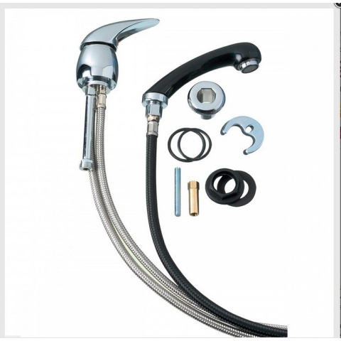Komplett fodrász fejmosó csaptelep szett. Minden típusú fejmosóra felszerelhető.Egykaros csaptelep+kézi zuhanyfej+zuhanycső