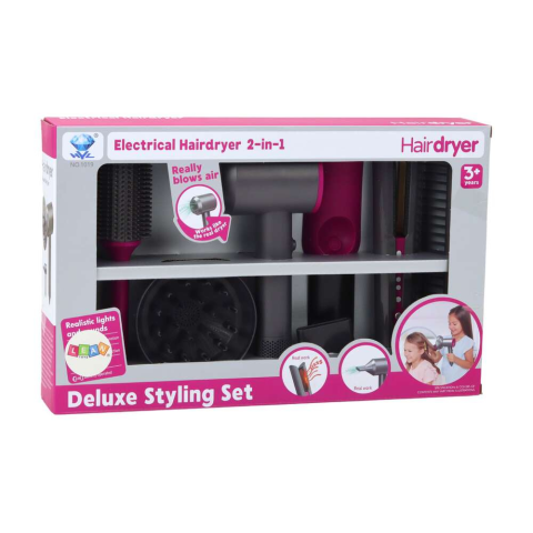 Fodrászkészlet gyerekeknek: hajszárító, hajegyenesítő, kefe, cserélhető fejek Ez a gyermek fodrászkészlet egy rendkívüli játék, amely a gyerekeket a hajformázás izgalmas világába kalauzolja. A teljes készlet tartalmaz egy hajszárítót, hajegyenesítőt, kefét, fésűt és cserélhető fejeket, valamint egy praktikus hajegyenesítő tartót. Ez minden, amire egy kis stylistnak szüksége van ahhoz, hogy úgy érezze, valódi fodrász. A készlet legnagyobb előnye az autent