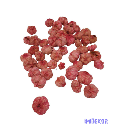 Egy csomag tartalma kb 10dkg/csomag, a képen látható mennyiség. Természetes dekoráció lévén a darabok változó méretűek, a csomagban kisebbek és nagyobbak is előfordulnak. A szárított termés festése nem mindig egyenletes.