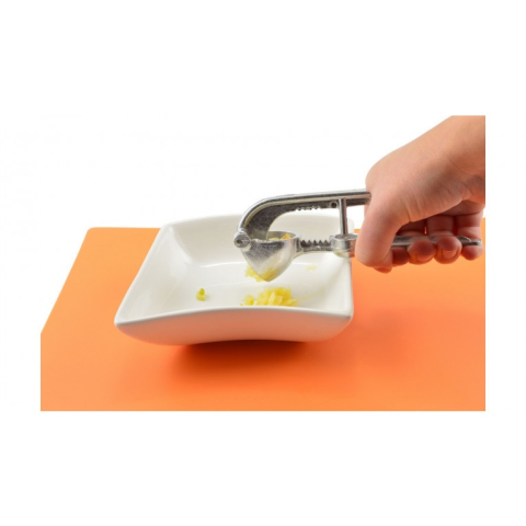Öntisztítós fém fokhagymanyomó, elengedhetetlen kelléke a konyhának, hiszen a fokhagyma alapvető hozzávalója a magyaros ételeknek. Ha átfordítja a nyelet, a műanyag redős rész könnyedén eltá