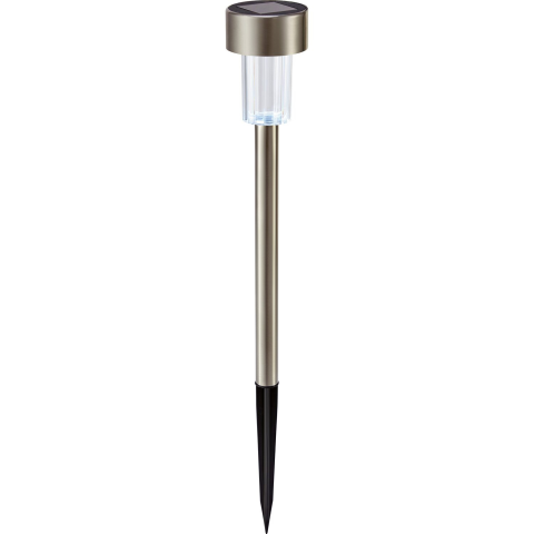 Ez a földbe szúrható napelemes lámpa dekoratív megvilágítást biztosít, amely elhelyezhető ágyásokban, virágládákban vagy füves területeken is. Masszív és hosszú élettartamú minőségben készült. Időtlen modern, ezüst színű kialakításával a földbe szúrható napelemes lámpa minden külső térbe illik. IP44 érintésvédelmi osztályú, tehát fröccsenő víz ellen védett. A földbe szúrható napelemes lámpa magassága 40 cm, átmérője pedig 5,5 cm. A kült