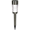 A modern földbe szúrható napelemes lámpa dekoratív világítás az erkélyen, a teraszon és a kertben. Személyes ízlésének megfelelően ágyásba, virágládába vagy a gyepen is elhelyezhető. A földbe szúrható napelemes lámpa tartós rozsdamentes acélból és polipropilénből készül. Klasszikus ezüst megjelenésű, és számos kertészeti koncepcióval kiegészíthető. Az IP44-es védettségnek köszönhetően a földbe szúrható napelemes lámpa fröccsenő víz ellen vé