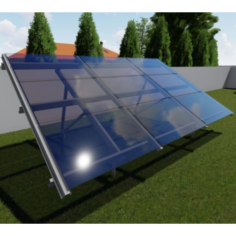 1 kép Földre telepíthető napelem-tartószerkezet 30°-os dőlésszög, 9 napelem, 1750mm, vízszintes szerelés