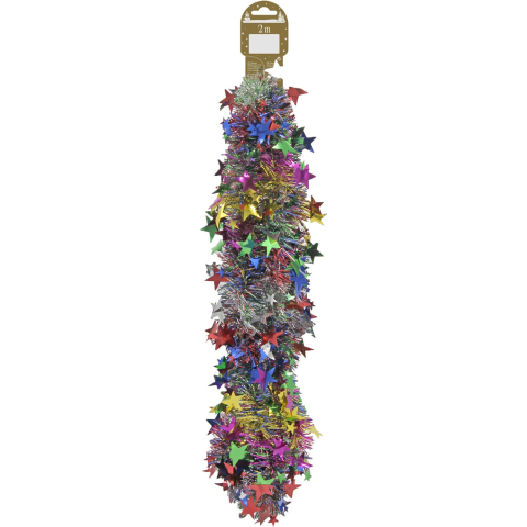 Deco karácsonyi girland beltérre. Multi Color megjelenéssel csillagokkal. A girland 2 méter hosszú.