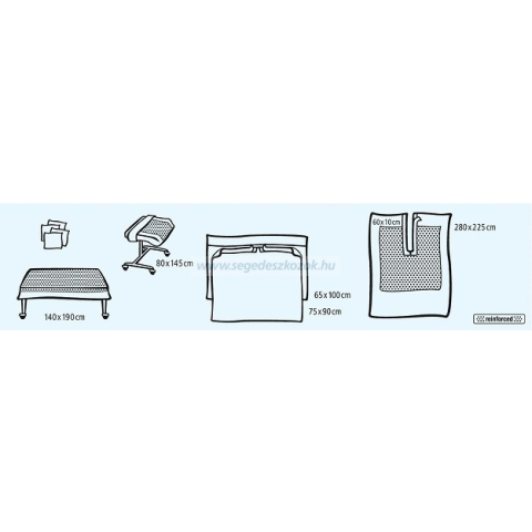 1 Tischabdeckung, verstärkt, 140x190 cm 1 Instrumententischbezug 80x145 cm 1 Schlitztuch, selbstklebend, verstärkt, 225x280 cm 1 Turbantuch 65x100 cm und 75x90 cm 4 Zellstofftücher Lejárt sterilitású termék felhasználását nem ajánljuk egészségügyi felh