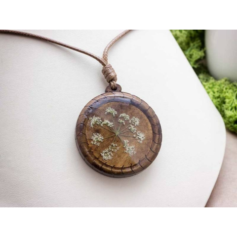 Foltos bürök műgyantában faalapú nyaklánc nyaklánc 1 kép