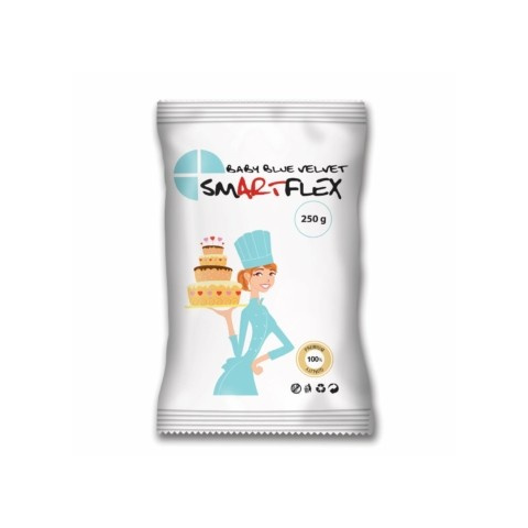 Fondant Smartflex Velvet Baby Blue 250g A Fondant Smartflex Velvet Baby Blue 250g egy prémium minőségű dekorációs massza, amely tökéletes választás a torták és sütemények finom bevonásához. Az egyedülálló baby blue árnyalat eleganciát és frissességet köl