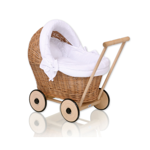 1 kép Fonott babakocsi fehér ágyneművel és puha párnázással STELLA - natúr