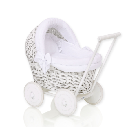 1 kép Fonott babakocsi fehér, fehér ágyneművel és puha béléssel, STELLA