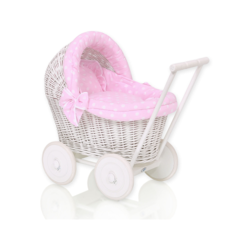 1 kép Fonott babakocsi fehér, rózsaszín ágyneművel és puha béléssel, STELLA