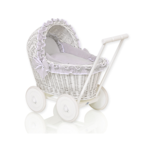 1 kép Fonott babakocsi, fehér, szürke ágyneművel és puha béléssel, CHIARA