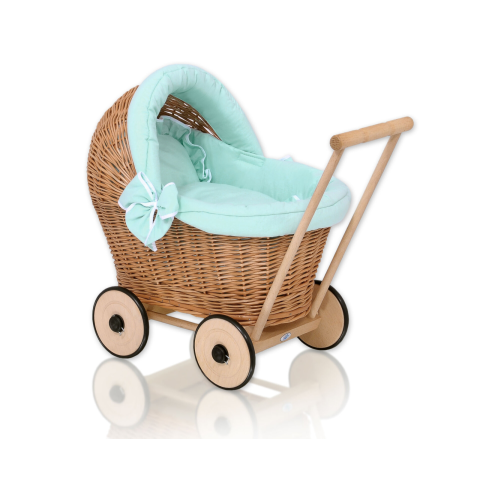 1 kép Fonott babakocsi menta színű ágyneművel és puha béléssel - natúr