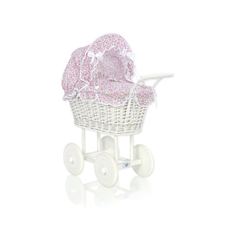 Kézzel fonott babakocsi rózsaszín ágyneművel - Fehér, fa váz 💖 Ez a bájos, kézzel készített fonott babakocsi tökéletes ajándék a kis hercegnők számára. A természetes anyagok és a gondos kidolgozás garantálják a tartósságot és a stílusos megjelenést....