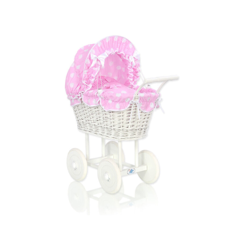 1 kép Fonott babakocsi rózsaszín ágyneművel és béléssel - fehér