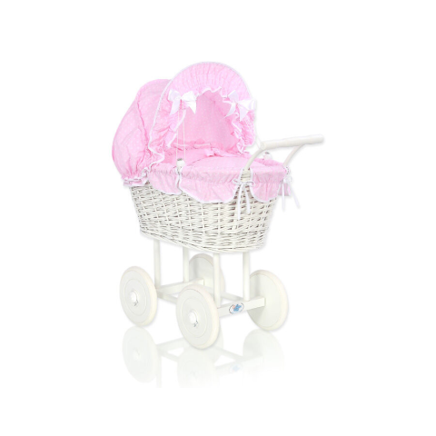 1 kép Fonott babakocsi rózsaszín ágyneművel és béléssel - fehér