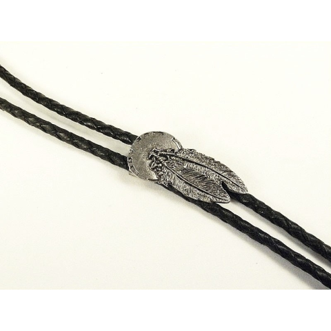 Indián toll amerikai nyakkendő. Fekete vagy barna valódi fonott bőr, fekete antik galvanizált fém indin toll és fém záró dísszel Anyaga: zamak