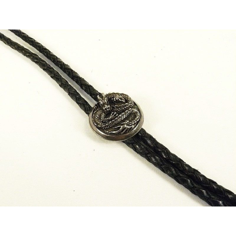 Tekeredő sárkány mintás amerikai nyakkendő. Fekete vagy barna valódi fonott bőr, fekete antik galvanizál fém sárkány és fém záró dísszel Anyaga: zamak