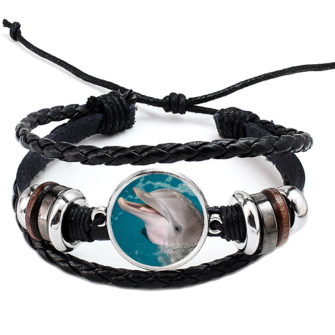 1 kép Fonott, dizájnbőr uniszex állítható delfines karkötő, feliratozható