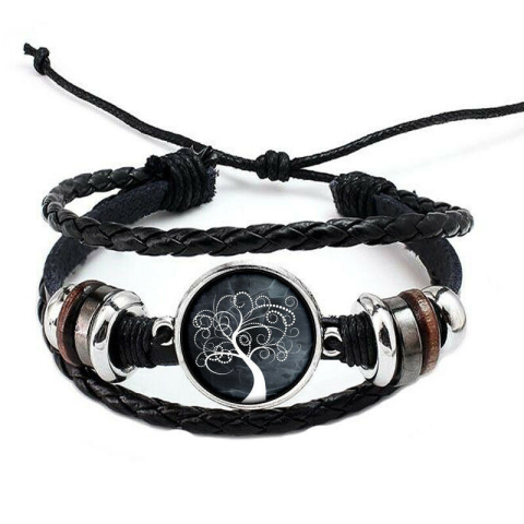 Fonott, dizájnbőr uniszex állítható Élet Fája karkötő, feliratozható karkötő 1 kép