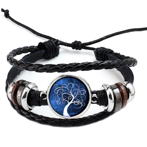 1 kép Fonott, dizájnbőr uniszex állítható kék-fehér Életfa karkötő, feliratozható