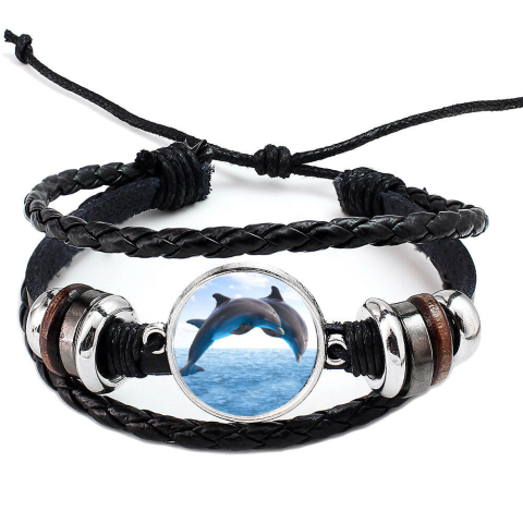 1 kép Fonott, dizájnbőr uniszex állítható két delfines karkötő, feliratozható