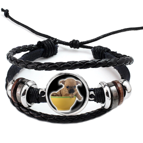 1 kép Fonott, dizájnbőr uniszex állítható kutyás karkötő, feliratozható