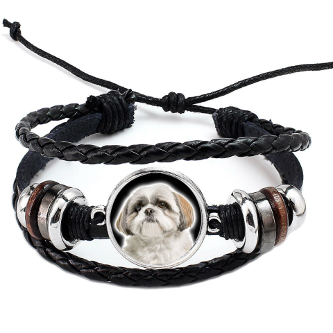 1 kép Fonott, dizájnbőr uniszex állítható kutyás karkötő, feliratozható