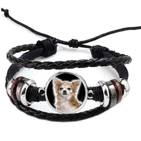 1 kép Fonott, dizájnbőr uniszex állítható kutyás karkötő, feliratozható