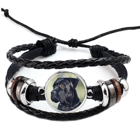 1 kép Fonott, dizájnbőr uniszex állítható kutyás karkötő, feliratozható