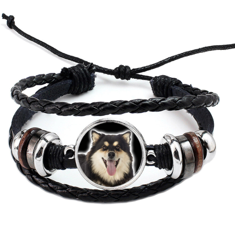 1 kép Fonott, dizájnbőr uniszex állítható kutyás karkötő, feliratozható
