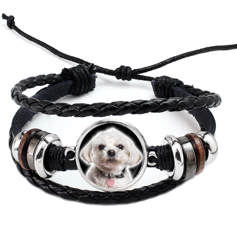 1 kép Fonott, dizájnbőr uniszex állítható kutyás karkötő, feliratozható
