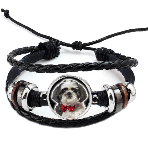 1 kép Fonott, dizájnbőr uniszex állítható kutyás karkötő, feliratozható
