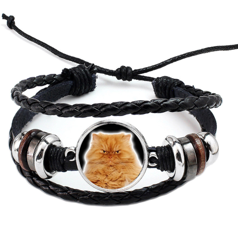 1 kép Fonott, dizájnbőr uniszex állítható morcos cicás karkötő, feliratozható