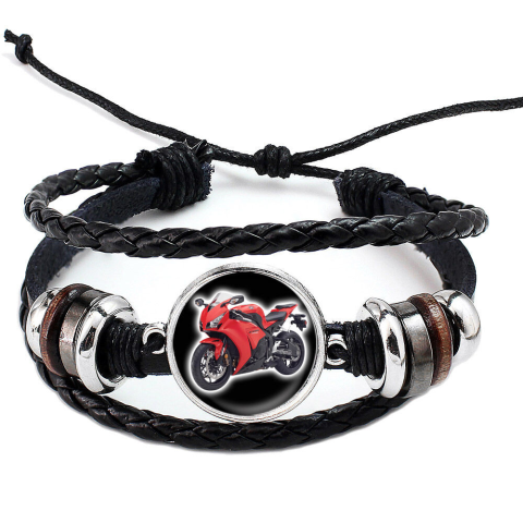 1 kép Fonott, dizájnbőr uniszex állítható motoros karkötő, feliratozható