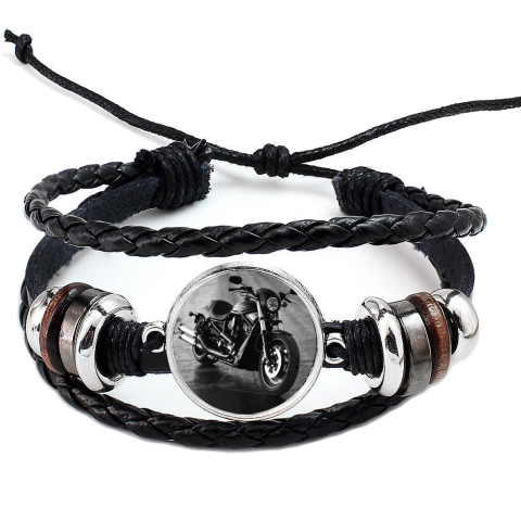 1 kép Fonott, dizájnbőr uniszex állítható motoros karkötő, feliratozható