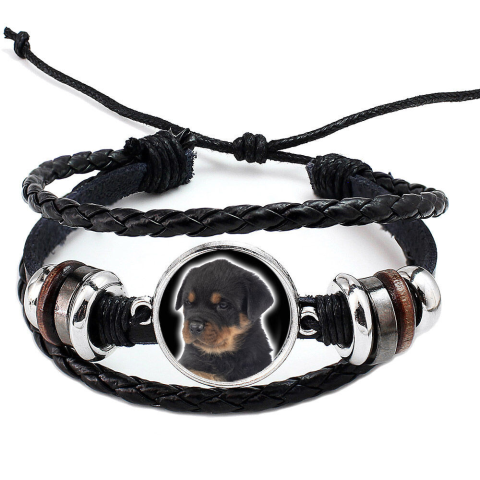 1 kép Fonott, dizájnbőr uniszex állítható Rottweileres karkötő, feliratozható