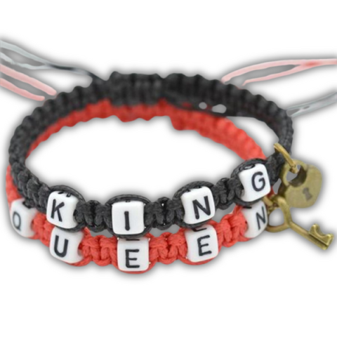 Stílusos King and Queen páros karkötő piros-fekete fonott kivitelben, állítható mérettel, tökéletes szerelmeseknek és pároknak ajándékként