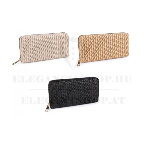 A női pé,nztá,rca ,lenyűgö,zi ,a szalmá,t hűen utá,nzó, szö,vö,tt huzatá,val ,.A pé,nztá,rcá,n egy fő zseb talá,lható,, amely fé,m cipzá,rral zá,ró,dik. Belü,l a pé,nztá,rca ,há,rom nagy rekeszre van osztva a papí,rszá,mlá,k szá,má,ra, ,é,s egy zá,rható, ,cipzá,ras zsebre ,, amely é,