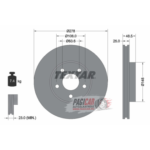 1 kép Ford Focus 2 első féktárcsa (278mm, hűtött) - Textar (921412205)