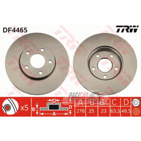 1 kép Ford Focus 2 első féktárcsa (278mm, hűtött) - TRW (DF4465) SZETT (2db)