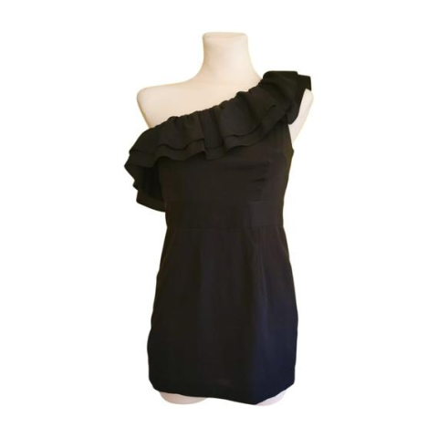 Ez a Forever 21 fekete félvállas női ruha egy nagyon csinos, nőies darab. Anyaga vékonyabb, de kissé merevebb. Karcsúsított fazonja mellett szoknyája kifejezetten rövid. Jól kombinálható hétköznapi és elegáns darabokkal is. Fiatalos
