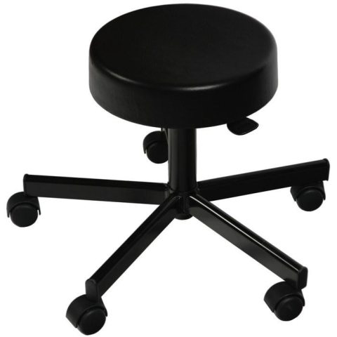 Műbőr kárpit, fekete acél talppal, görgővel. A szék magasságát gázrugóval lehet állítani. Magassága: 45-58 cm között állítható. Ülőke átmérő: 40 cm. Szivacs vastagság: 6 cm. fekete műbőr kárpittal