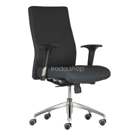 ANTARES Szögletes, telekárpitos háttámla és ülőlap, fix háttámla, állítható rugózási keménységű, több ponton rögzíthető szinkronmechanika antishock funkcióval, állítható magasságú, krómozott szárú karfa, polírozott alumínium lábkereszt normál méretű pa