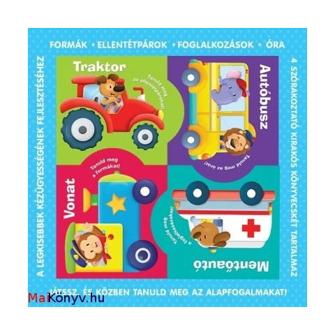 Formák Ellentétpárok Foglalkozások Óra_x000D_ - A négy könyvecske segítségével a legkisebbek megtanulhatják a kedvenc közlekedési eszközeikkel kapcsolatos alapfogalmakat._x000D_ - A kirakós játékok fejlesztik a gyerekek megfigyelőképességét._x000D_ - H