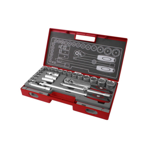 1 kép FORTUM dugókulcs klt. 1/2, 27db, 61CrV5 mattkróm; FORTUM