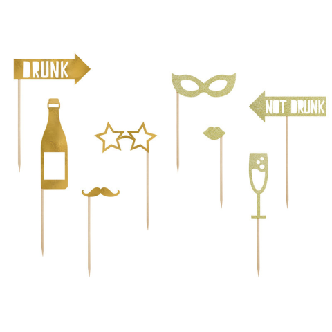 Fotó kellékek Ünnepeljünk arany színben, minták keveréke, csináld magad termék, magasság összeszerelés után kb. 21-42 cm. (1 db / 8 db.)
