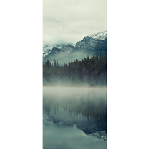 Fotótapéta ajtóra MOUNTAIN LAKE 86 x 200 cm az egyszerű ajtókat lélegzetelállító hegyi tájakkal körülvett ablakokká varázsolja. A ködös tó, amelyet sötét erdők és fenséges hegycsúcsok ölelnek körül, nyugodt és titokzatos atmoszférát teremt, amely harmóniát és a mindennapi rohanásból való menekülés érzését hozza a belső térbe. A motívum két részre van osztva a könnyű alkalmazás érdekében.