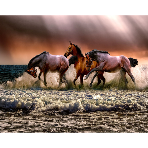 1 kép Fotótapéta Barna vágtató lovak, 350 x 200 cm